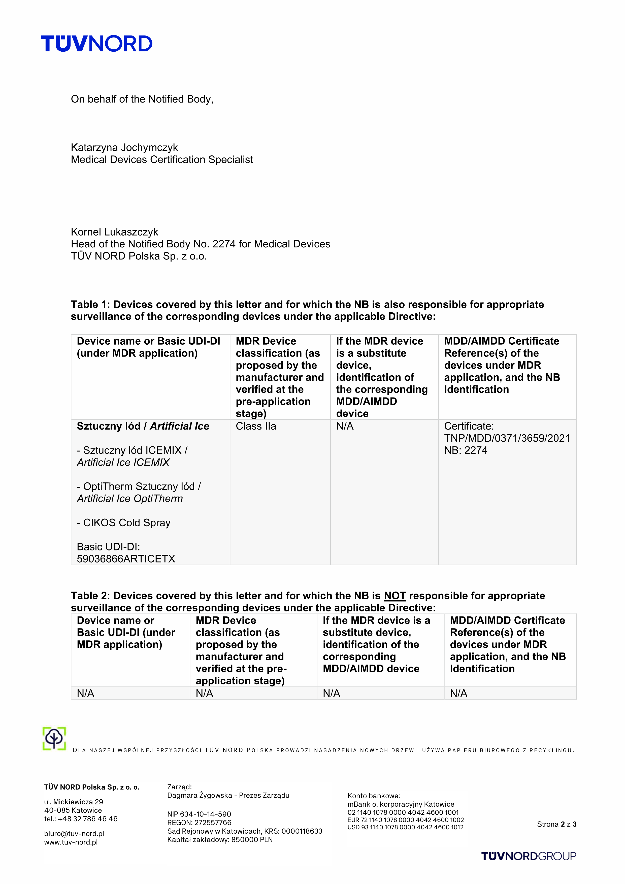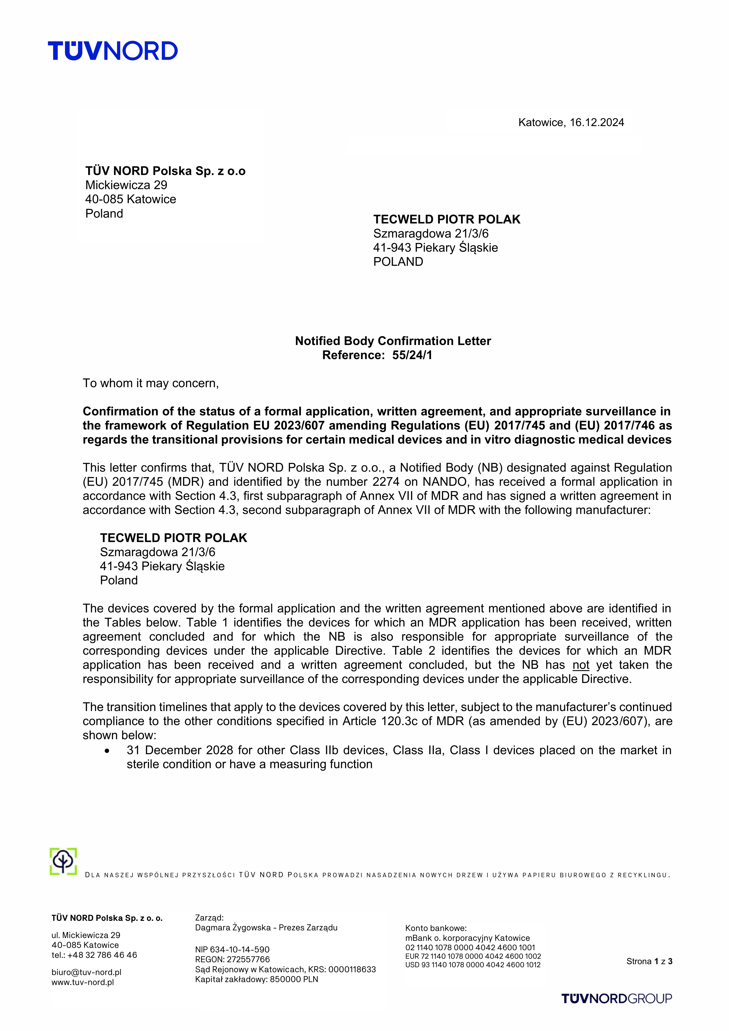 – Certyfikat WE zgodny z dyrektywą 93/42/EWG (MDD)