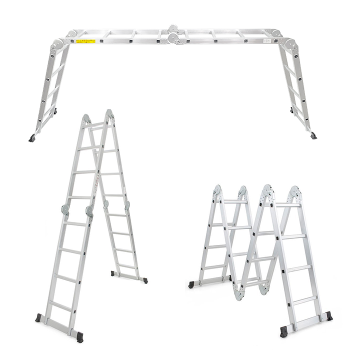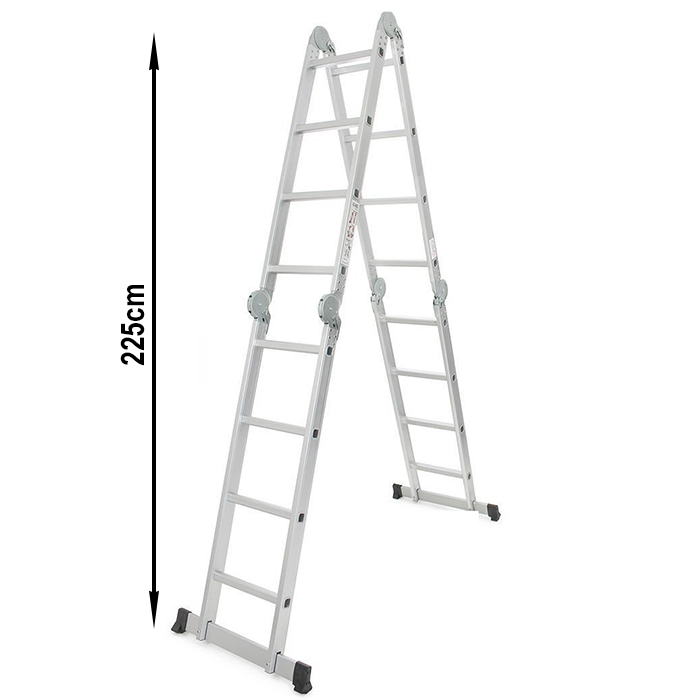 Wielofunkcyjna drabina aluminiowa 4×4 to najbardziej uniwersalna drabina na rynku. Możesz ją wykorzystać jako podest roboczy, jako drabinę wolnostojącą lub drabinę przystawną. Drabina po złożeniu jest kompaktowa i zajmuje mało miejsca. Jedna drabina – 7 kombinacji!