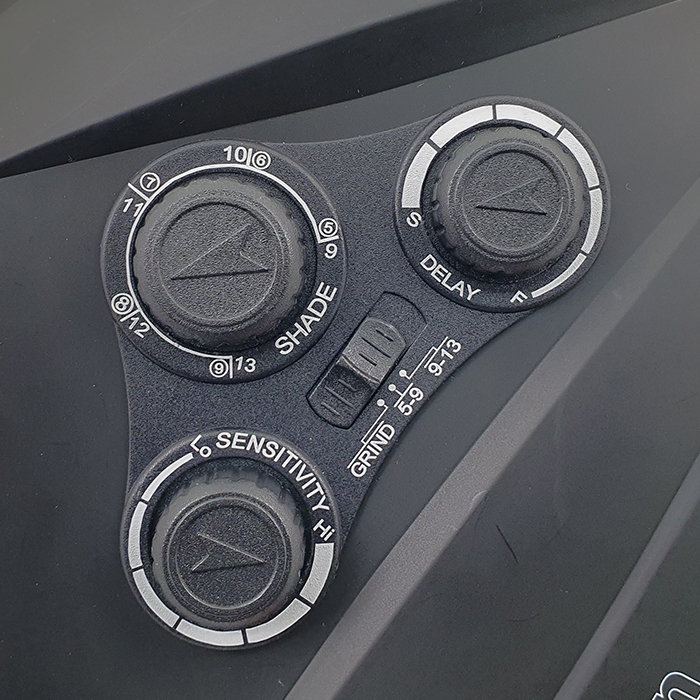 Przyłbica V6a posiada trzy zewnętrzne pokrętła umożliwiające regulację stopnia zaciemnienia od 5 do 13 wg DIN, płynną regulację czułości reakcji fotoczujników na intensywność łuku podczas spawania oraz płynną regulację czasu opóźnienia przełączania stanu ciemny/jasny. Możliwy jest także wybór trybu szlifowania, w którym filtr zaciemniający przełącza się w stan jasny bez opcji regulacji zaciemnienia