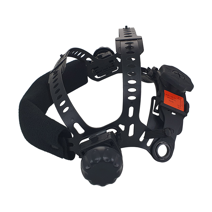 Przyłbica V8a posiada zaawansowane, komfortowe i ergonomiczne nagłowie, umożliwiające idealne dopasowanie oraz pełną regulację położenia przyłbicy. Specjalny system odchylania zmienia środek ciężkości przyłbicy względem głowy spawacza.
