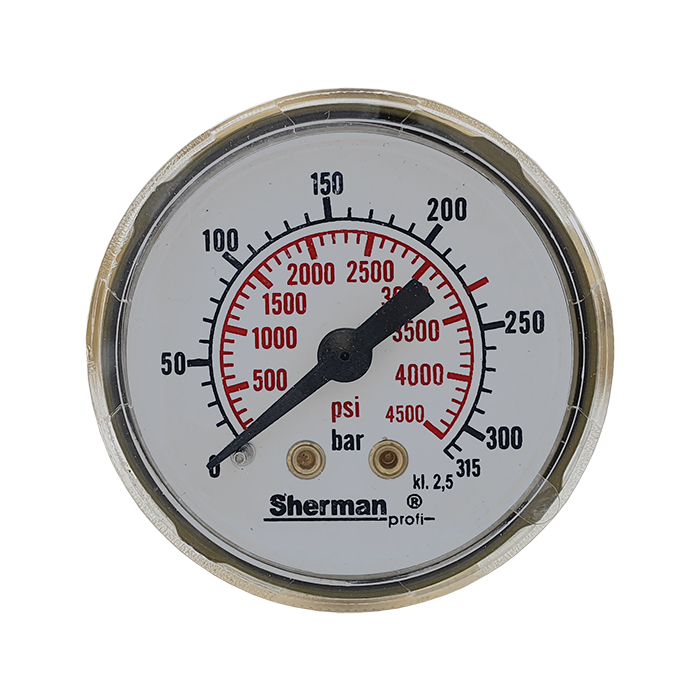 Reduktor jednostopniowy do argonu, mieszanki i dwutlenku węgla z rotametrycznym wskaźnikiem przepływu gazu oraz manometrycznym wskaźnikiem ciśnienia roboczego w butli.