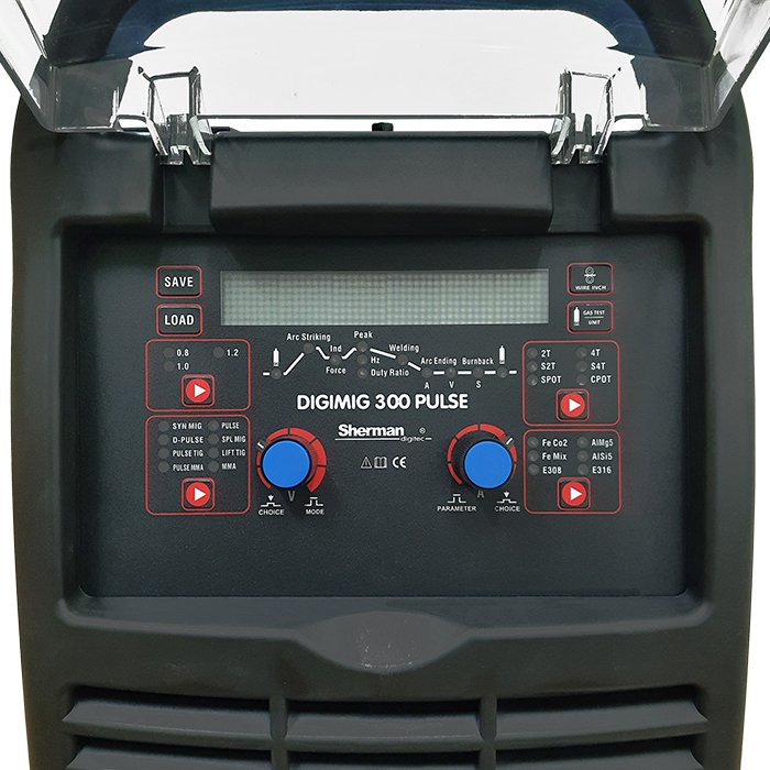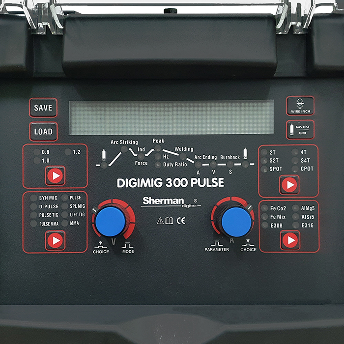 DIGIMIG 300 Pulse umożliwia spawanie metodą TIG z pulsacją DC wraz z regulacją charakterystyki pulsu. Spawarka umożliwia wykorzystanie kilku trybów pracy łącznie z opcją spawania punktowego. Urządzenie posiada pamięć ostatniego ustawienia, czyli po jego wyłączeniu i ponownym załączeniu przywracane są ostatnio ustawione parametry. Możliwe jest również zapamiętanie 35 zestawów ustawień z łatwym dostępem do trybu zapisu/odtworzenia programu. Na wewnętrznej stronie pokrywy komory szpuli umieszczony został skrócony poradnik dla spawacza ułatwiający bieżąca obsługę urządzenia ze szczegółowym opisem dostępu do regulowanych parametrów pracy.
