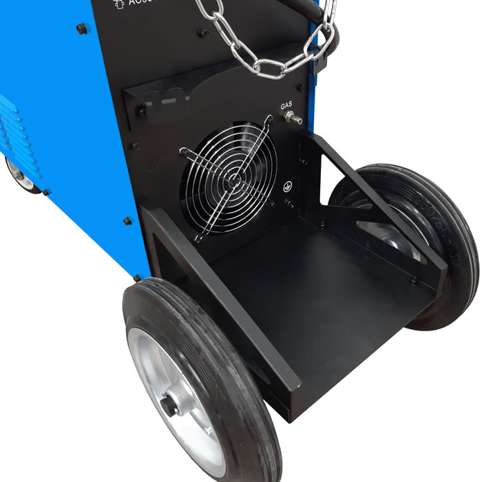 Spawarka wyposażona jest w unikatowy uchwyt MIG o długości 4m z pokrętłem w rękojeści umożliwiającym zdalną regulację napięcia/prądu spawania podczas pracy w trybie synergicznym.