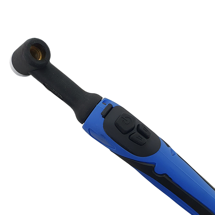 W komplecie znajdują się uchwyt spawalniczy TIG ze sterowaniem w rękojeści, przewód elektrodowy oraz przewód masowy.