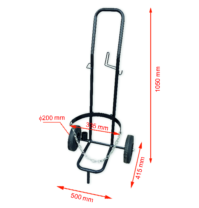 Lekki i poręczny wózek do transportu butli z propanem i mieszanką propan-butan 11kg. Dedykowany do zestawów do podgrzewania, umożliwia zawieszenie węży zasilających i odstawienie palnika podgrzewającego podczas przerw w pracy. wózek jest na kołach gumowych, niepompowanych.