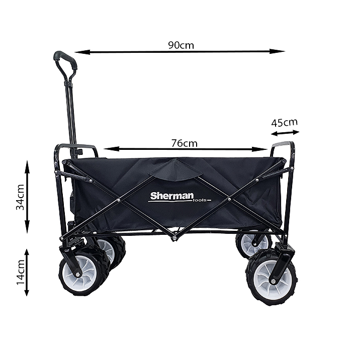 Wielozadaniowy wózek transportowy, idealny na wakacje, na plażę, camping, czy zakupy. Łatwy w prowadzeniu i składaniu. Zajmuje niewiele miejsca, idealnie zmieści się do bagażnika samochodu. Lekka konstrukcja oraz zwrotność wózka pozwoli w łatwy sposób transportować i przewozić bagaż. W zestawie siatka zabezpieczająca ładunek z haczykami.