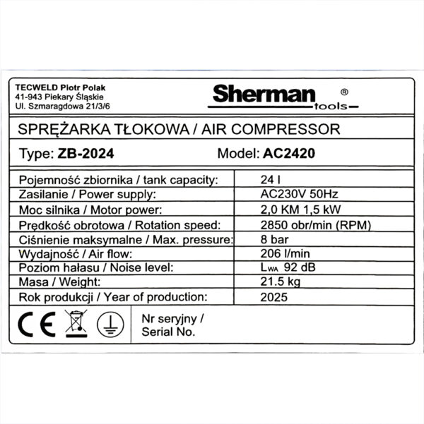 • certyfikowany zbiornik powietrza – bezpieczeństwo i niezawodność.
