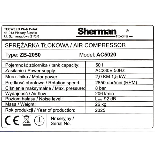 - certyfikowany zbiornik powietrza – bezpieczeństwo i niezawodność.