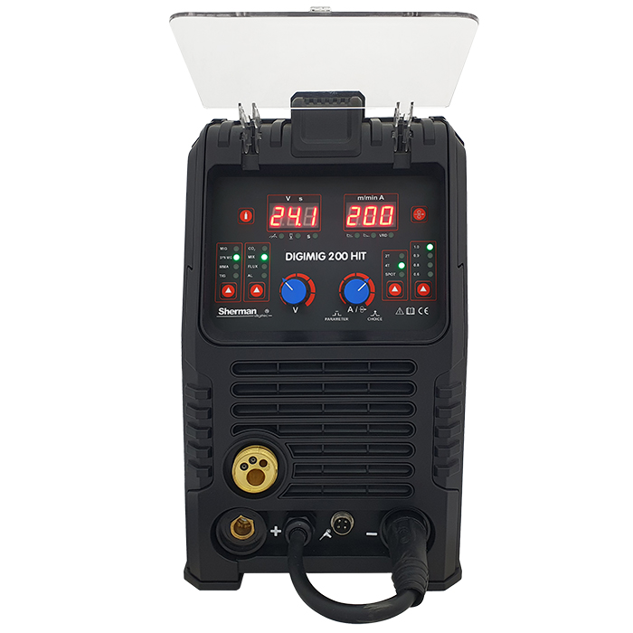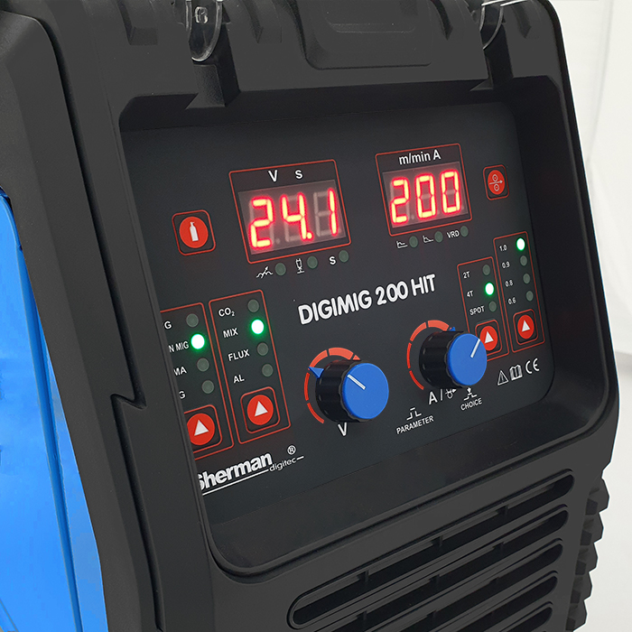 Synergiczna spawarka DIGIMIG 200 HIT służy do spawania ręcznego stali metali kolorowych. Umożliwia spawanie metodami MMA (elektrodą otuloną), TIG Lift oraz MIG/MAG. Dzięki zmianie polaryzacji urządzenie pozwala spawać metodą MIG/MAG z zastosowaniem zarówno standardowych drutów w osłonie gazów ochronnych jak i samoosłonowych drutów proszkowych.