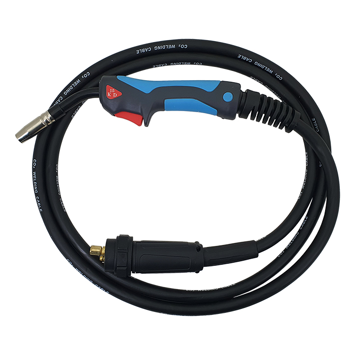 W komplecie znajduje się uchwyt MIG, przewód elektrodowy, przewód masowy.