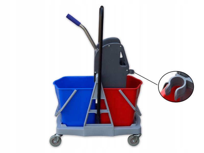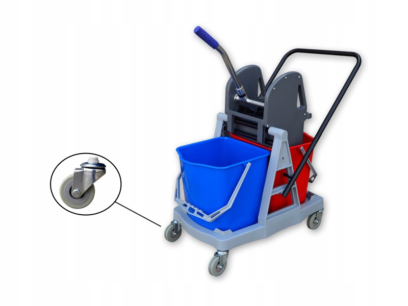 - dwukolorowe wiaderka, niebieskie na czystą wodę i czerwone na wodę brudną, każde o pojemności 15 litrów